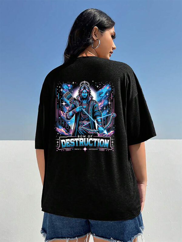 Introducing “The Bow of Destruction,” a striking piece from Srottam’s Anime Collection. This oversized drop shoulder French Terry T-shirt, available in Black and Maroon, embodies the spirit of an imposing warrior, the ultimate defender of truth.
