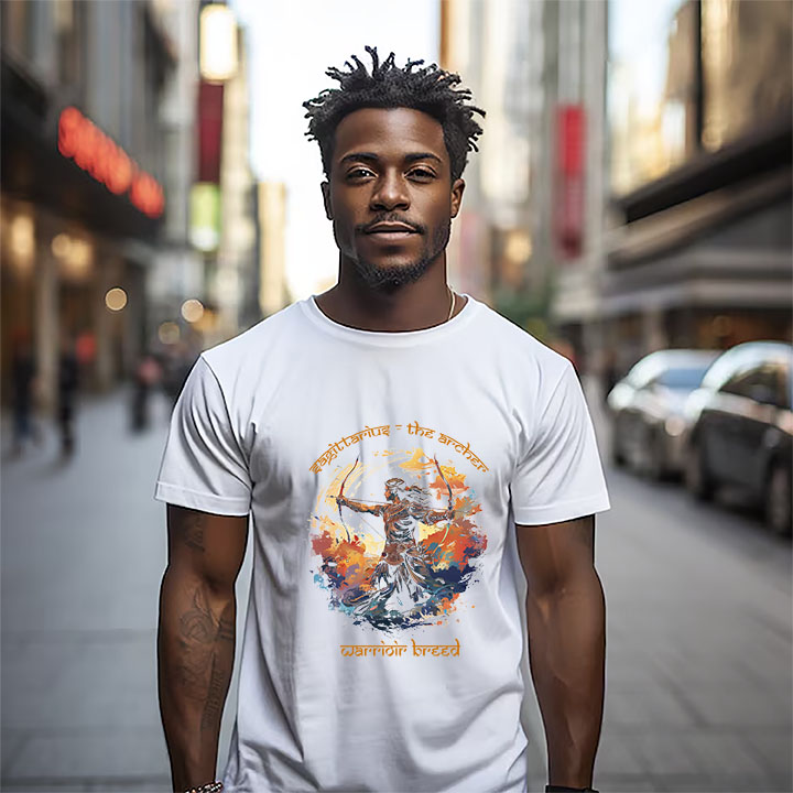 Embrace the warrior within and celebrate the Sagittarius spirit with this standout T-shirt. Ideal for astrology enthusiasts, zodiac followers, or anyone who resonates with the Sagittarius’ bold and adventurous traits. This T-shirt is more than just clothing—it’s a tribute to the fearless and determined nature that defines the Sagittarius breed.