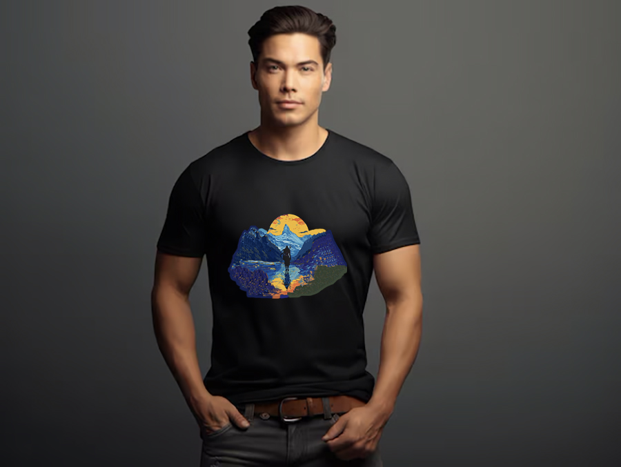 Introducing our Premium Bio-washed Cotton T-shirt, an exquisite fusion of divine serenity and natural beauty, featuring the timeless depiction of Shiva walking in a valley at sunset, with his reflection shimmering in the tranquil river below. Crafted from superior quality bio-washed cotton, this tee offers unparalleled comfort and durability, ensuring a perfect fit for every wearer.
