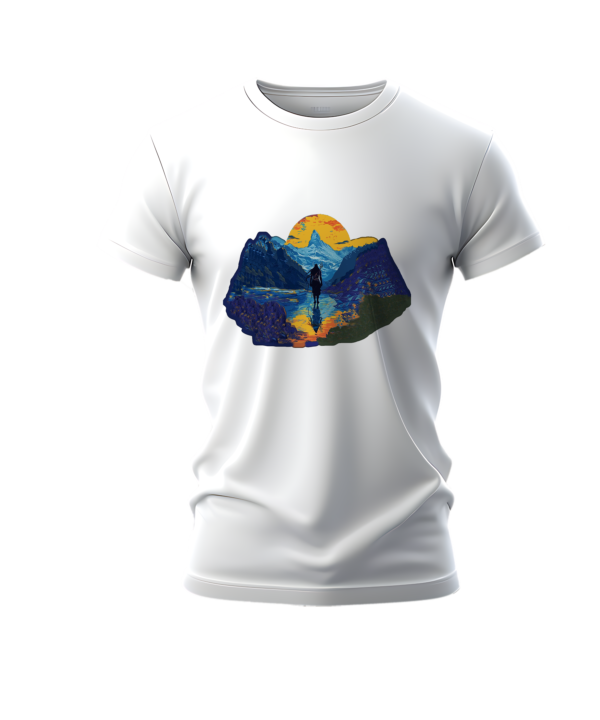 Available in two elegant color options—black and white—each shirt captures the essence of Shiva’s ethereal presence amidst the picturesque landscape, invoking a sense of awe and tranquility. The vibrant hues of the sunset cast a mesmerizing glow, illuminating Shiva’s divine form as he strides gracefully through the valley, symbolizing the eternal cycle of creation and destruction.